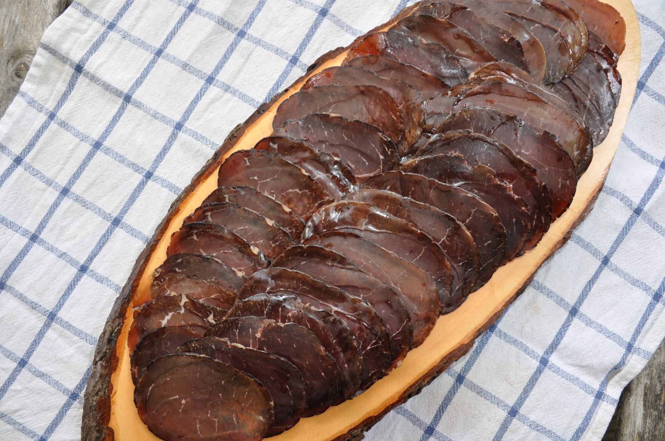 Er ist zart, kräftig, und trockener als unser geräucherter Rinderschinken. Ähnelt Bündnerfleisch, ist aber ein wenig rustikaler.
