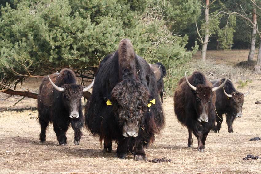 Yaks benehmen sich nicht wie Rinder, sondern eher wie Ziegen. Sie klettern beim Klauenschneiden aus dem Fangstand, sie grunzen, und laufen bei Misstrauen einfach rückwärts (das machen Rinder nicht).
